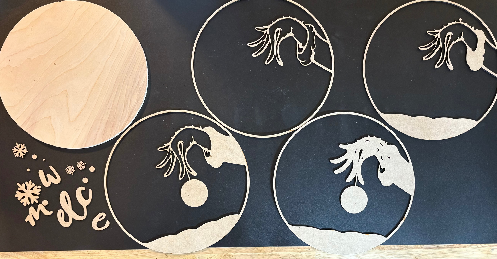 Bring a mischievous dose of holiday magic to your entryway with this whimsical Grinch-themed welcome sign! Crafted from sturdy wood and MDF, this charming 12-18" round piece captures the spirit of Christmas and may even grow your heart three sizes bigger!